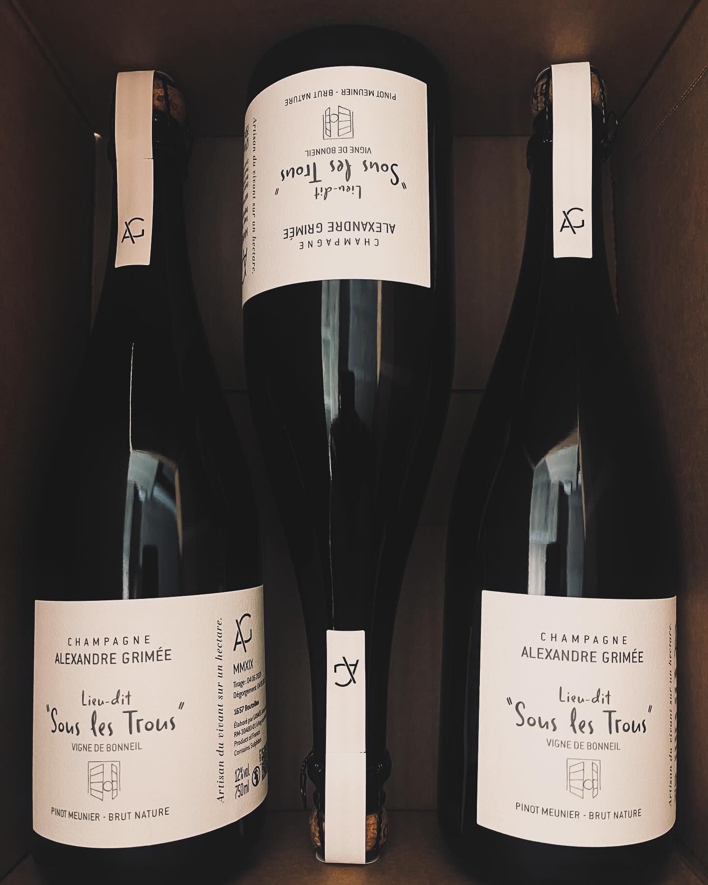 La cuvée « Sous les Trous » constitue l’unique expression du talent d’Alexandre Grimée, mais quelle expression ! Cette cuvée parcellaire exceptionnelle tire son nom de la parcelle éponyme située à Bonneil, plantée par son grand-père en 1973. Élaborée exclusivement à partir de Pinot Meunier, elle incarne parfaitement la philosophie du vigneron : révéler l’authenticité d’un terroir et la personnalité d’un millésime à travers un cépage trop souvent sous-estimé.